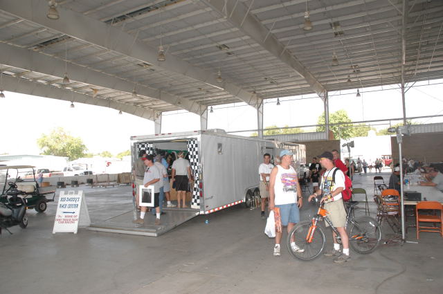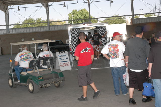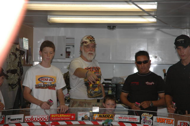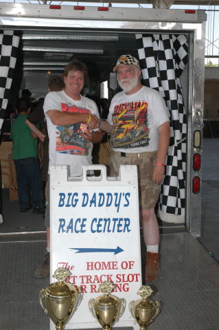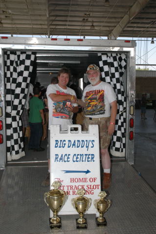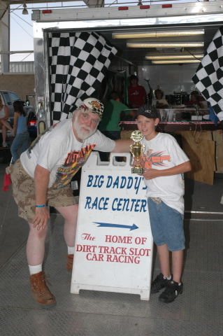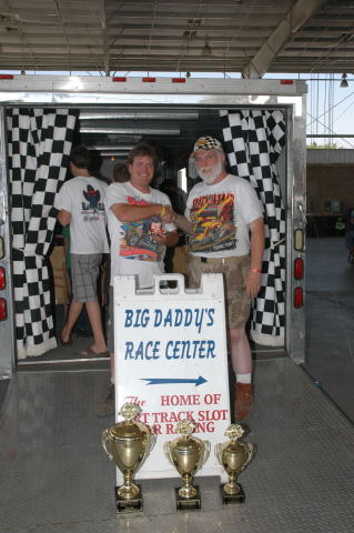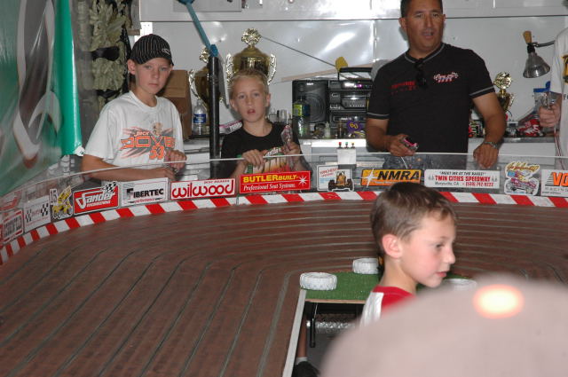 Sept. 1-8 "07 Speedweek Report" "Slot Car Speed Week '07". What a week it was! Where do we begin? The proverbial roller coaster as they say!! Starting out at Calistoga Speedway we got in a preliminary race for kid's won by Ryan Williams before, due to unfortunate circumstances beyond our control slot car racing at Calistoga Speedway got OUTLAWED!!! You had to be there to believe it!!! The rest of the "King of Calistoga" slot car race had to be canceled but not before former USAC National Champion, Hall of Fame race driver, "The Rim Rider", Chuck Gurney, with a minimal number of warm up laps, appeared about ready to take all of us to slot car racing school! Sadly we will not be returning to Calistoga Speedway. Next year perhaps we will finally get a chance to go to "BURNING MAN" instead!!! Winning THE biggest race of his career , The biggest race of the year, THE ONE he has been waiting for, ONE for the record books and a very popular win, many time preliminary feature winner, 1/2 of MM Racing Photos and one of our very own, hard charging outlaw slot car racer Mark Sublett put his camera aside long enough to blow the rest of the field into the weeds!!! What a great race it was, with brother Matt hammering Mark back and forth early on for the lead like the two old adversaries that they are. Young Chelsy Hickson, Thursday's sensational feature winner also got up there with the leaders and looked like a contender. Great job Chelsy! As the laps clicked off and the rest of the field faded it was Mark finding the fast way around a tacky and fast racetrack. Near lap 30 Mark in the #14 Tim Green car took command of the race and lapped the second and third place cars then finished up with a flawless run to the checked flag in the remaining laps to take the 40 lap feature win!!! Finishing second with a phenomenal run in the 3DB slot car and a last minute entry was youngster Adam Walters!!! Super run Adam! Perhaps you should be running a full size race car!!! Third place was track Master Mind Steve Fuller. Mark is a great winner, a great slot car racer and a great representative of the sport and keep taking those great racing photos along with brother Matt. It would not be possible to run the Big Daddy’s Race Center events without the dedicated help and effort that Mark and Matt contribute to our sport. They are both superstars of outlaw slot car racing and continue to look forward to some of the real race drivers out there giving them a race along with the race fans and the kids.How about giving it to them next year at “Slot Car Speed Week" if not sooner? I think they will be ready to race you!!! Thank’s guys for your never ending support. Other highlights of “speedweek” included feature wins by Matt on Wednesday, our first lady feature event winner on Thursday, youngster Chelsy Hickson, Jr. feature winner on Friday by “The Other Wild Child”, ” little Jack” Hickson, Chelsey’s younger brother, and Jr. Feature winner Jacob Steakman. Jr. We also were pleased to have real race drivers, up and coming Kyle Larson and Mason Moore stop by for hot laps along with future star and local hotshoe Robert Ballou. Outlaw race drivers Randy “The Hurricane” Hannigan and Justin Henderson were also mixing it up with the kids and really gave them a thrill! Look for the clip on Speed Channel next week! Thank you guys for your support we really appreciate it. The best, we saved for last. The people of John Padjen Motorsports, especially long time race official and staff member Pat Ponzo went way out of their way to “roll out the red carpet” and arranged for us to be included in the official autograph session on Saturday afternoon in the large open air pavilion and become a part of the official proceedings. We wish to express a very, very sincere thank you to National Motorsports Promoter of The Year, John Padjen and all the folks at John Padjen Motorsports. We are truly very grateful for this opportunity to make this event the premier event in the nation for 1/32 scale outlaw slot cars and plan on making this event even bigger and better next year!!! We believe it is safe to say that “outlaw slot car racing” has a new home at Silver Dollar Speedway!!! |