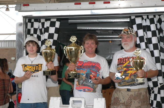 Top 3 finishers in the 2nd annual "Race of Champions" held at Silver Dollar Speedway. |