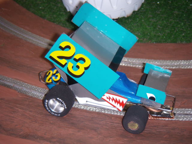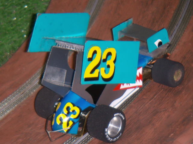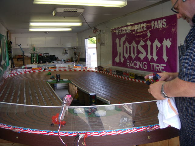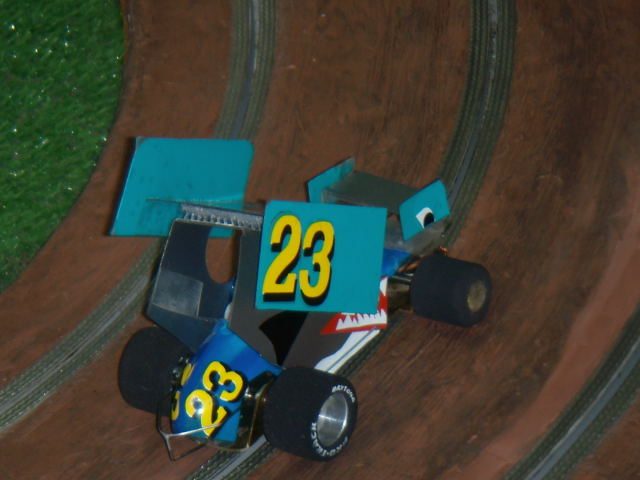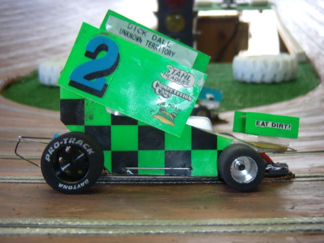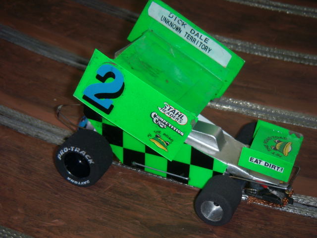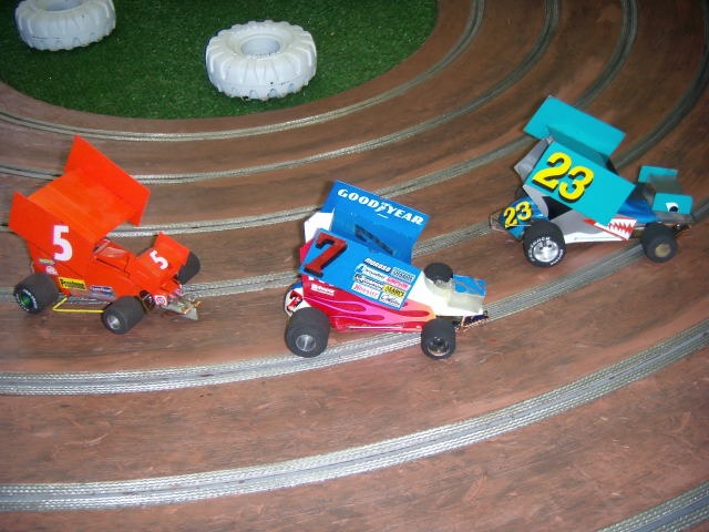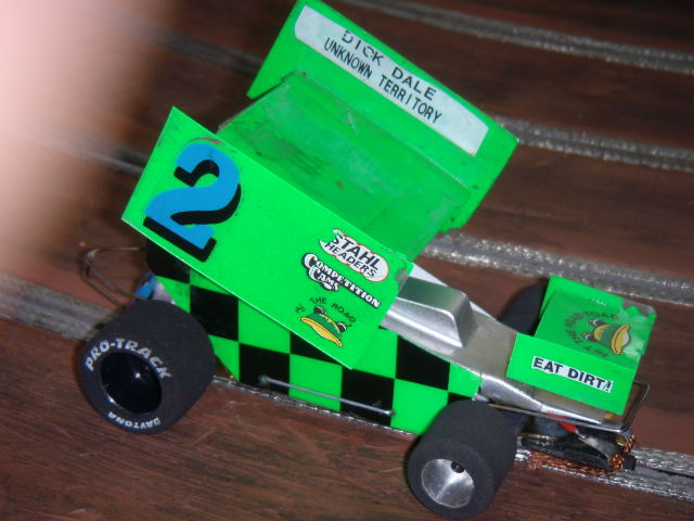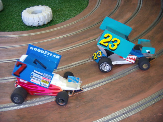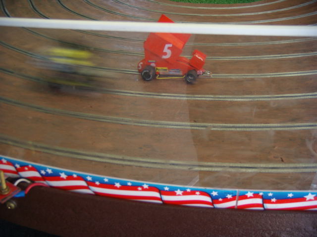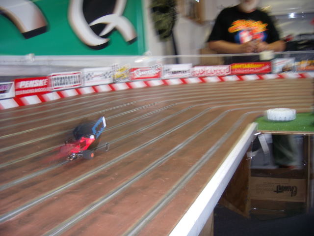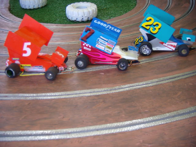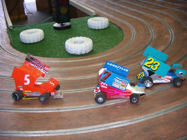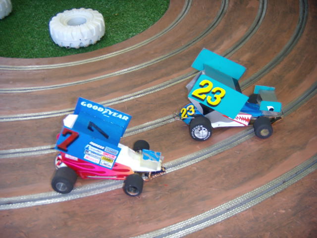RUMBLE II Big Daddy's Rumble II at Slot Car Raceway (6/30/07) turned into an afternoon of open competition dirt track slot car racing instead of the anticipated road rage follow up to "Rumble I". The star studded list of entrys included 2006 Race of Champion's and 2007 GP Classic wnner, race you anytime anywhere outlaw slot car racer "Big John" Albright, slot car racing Icon and owner of Slot Car Raceway Frank Sarkela, slot car racing legend and VIP Peter V, and The Slot Car Magician, 2006 Race of Champions runner-up Michael Garber. 10 lap heat races set the field for the 30 lap A-Main "Rumble II". After a pair of aborted attempts a single file start got the race going. The first 10 laps saw several lead changes. The three spin rule took effect eliminating several cars as the laps klicked off. Running a low slot it was The Mastermind of Big Daddy's Race Center, Steve Fuller comming up with his second big win since taking the track out on the road last year. FInding the fast groove and squeeking by at the finish ahead of second place finisher Ryan McDaniel and third place finisher Peter V. in the sharp looking Penngrove Motorcycles entry, it was his 10th win on the dirt. Good race guy's!!! Earlier a well known local celebrity was seen hot lapping. How did you like the dirt? Our next race "The King of Calistoga" at Calistoga Speedway is comming up fast. This will be a big event and a must for those race drivers and race fans that are planning to run the second annual "Race of Champions" a week later. The last chance to get ready to take on the Outlaws! We invite evervone to attend both events. This year there will be no entry fee for either event and we are expecting both to be bigger and better than last year!! Special thank's for making this event possible goes to a great slot car racer and VIP, owner of Slot Car Raceway and a great guy too!!, Frank Sarkela. Do yourself a big favor if you have not yet been to Slot Car Raceway and make sure to go and check it out soon. It is a great place to race slot cars and well worth stopping by. |